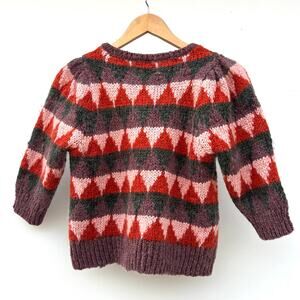 Zara Puff Shoulder Mohair Sweater Small Purple Patterned Holiday Pullover