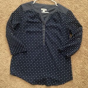 Croft&Barrow Flower Print Blue and White Blouse with 3/4 Sleeves