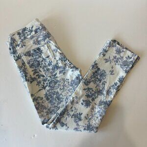 Elliott Lauren White & Blue Floral Stretch Pull On Cropped Ankle Pant Size 2