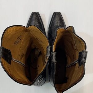 They feature a distressed black leather finish and prominent cross inlays or embroidery on the shaft. Preowned NWOT