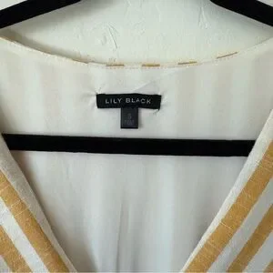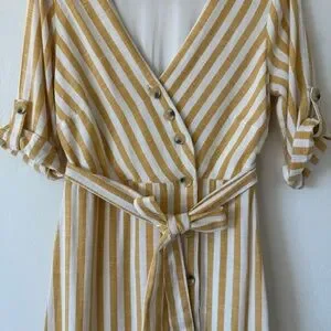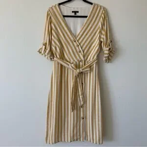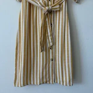 Lily Black Yellow White Striped Button Down Lined Linen Blend Midi Dress Small