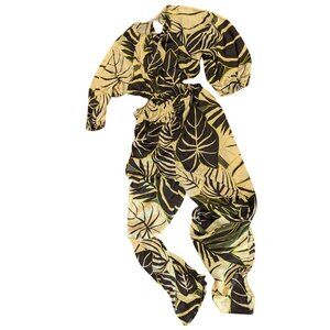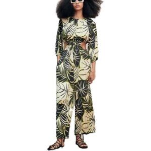Zara Cut Out Tropical Print Jumpsuit Satin Elastic Waist Multicolor Boho VACA