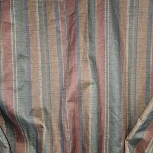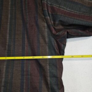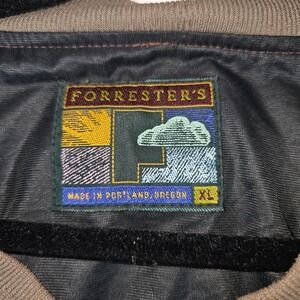 Forresters Outerwear pullover windbreaker in size XL. This lightweight outerwear piece features a repeating vertical stripe pattern in shades of brown, burgundy, grey, and teal. It has a classic V-neck collar and elasticized cuffs and hem for a comfortable and secure fit. The brand logo is prominently displayed on the inner neck label.