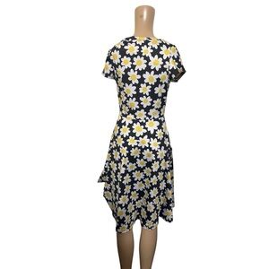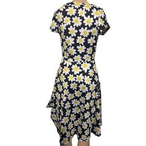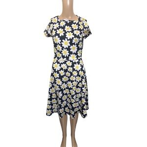 Embrace elegance with this black midi dress featuring a charming daisy print. Perfect for adding a touch of floral flair to your wardrobe.