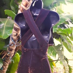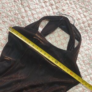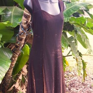 Light woven irridescent bronze fabric make a lovely glowy dress up formal occasion dress...halter styling with cross back straps...back zip..in exellent condition