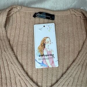 Pretty garden long sleeve V-neck rib, knit sweater, puff sleeves in large NWT