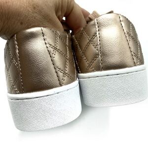 Shine with these metallic gold sneakers. Quilted design adds flair. Ideal for casual wear.