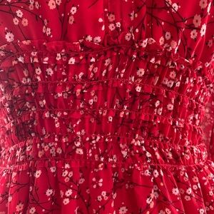 Red floral mini dress with a flattering fit. Lined dress. Perfect for any occasion.