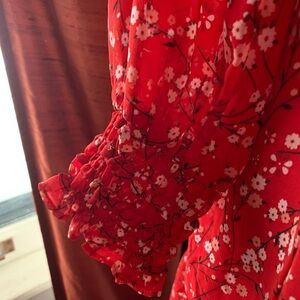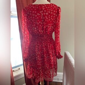 Max Studio Red Floral Short Dress with Long Sleeves