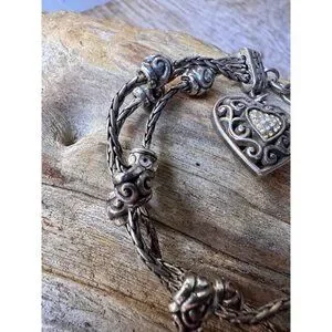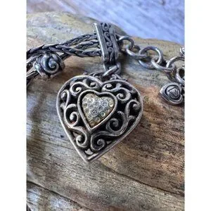 Brighton Reno Heart Dangle Charm Crystal 3 Strand Beaded Reversible Bracelet