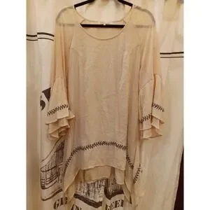 Indigo Soul Beige Embroidered Bell Sleeve Tunic Top XL