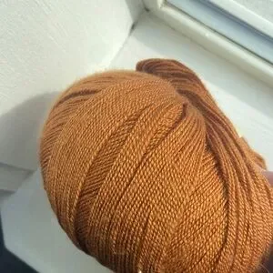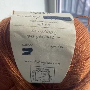 Luxurious Juniper Moon Farm Findley yarn. Rich copper color. Perfect for knitting and crochet projects.