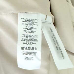 -Shell: 78% cotton, 20% rayon, 2% spandex. Lining: 100% polyester