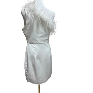 Altar’d State White Feather Trimmed Satin Mini Dress Size Medium