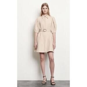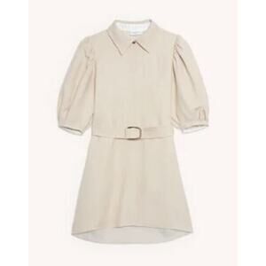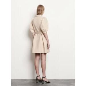Sandro Puffed Sleeves Cotton & Linen Blend Mini Dress in Beige Size 8 MSRP $445
