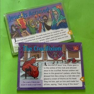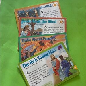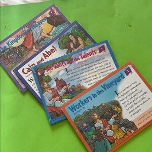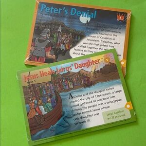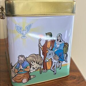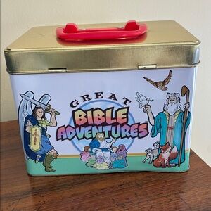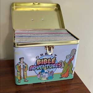 -2002; beautiful tin with 50 packs of cards (all still sealed in plastic) with Bible stories and related activities for kids
