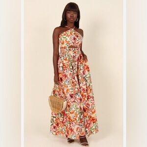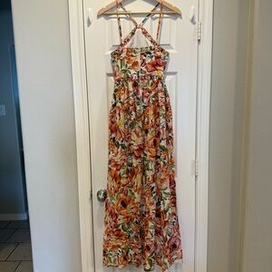 Petal & Pup Madeira Floral Maxi Dress Sz S Feminine Halter Pockets Boho Coquette