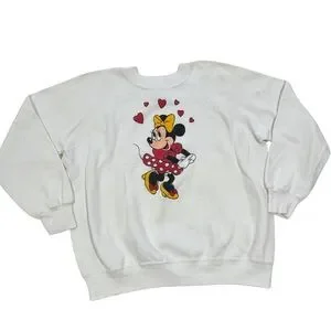 VTG 80’s White Minnie Mouse Sweatshirt with Red Hearts V-Day