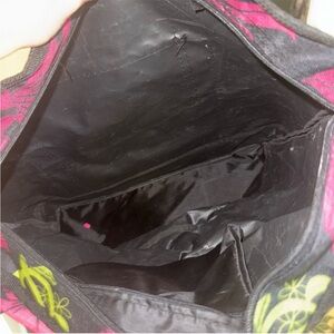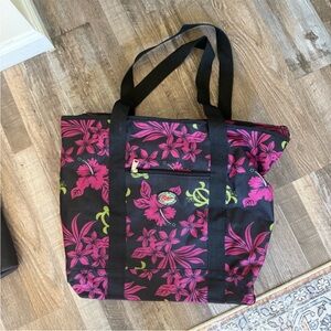 Elevate your style with this tropical floral tote bag in vibrant pink and black. Ideal for daily adventures.