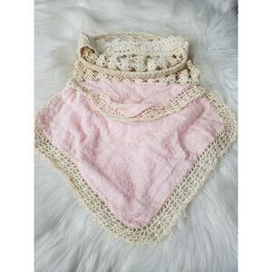 This is a vintage, handmade product. Can be used to hold plastic shopping bags, rags, clothes pins, etc. Made from laced doilies and a vintage towel, has a firm oval ring opening - Gently used, some light wear throughout. Measures approx 18 inches long x 17 inches wide - displays beautifully and meets an eclectic mix of home decor styles
