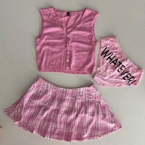 NWT Dollskill Clueless Inspired Pink Plaid Costume/Pink Co-Ord Set Regina George