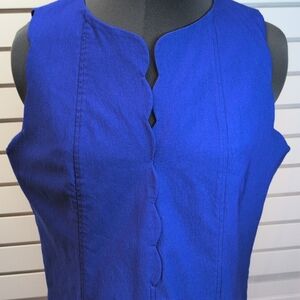 Sara Campbell Split Neck Scalloped Sleeveless Shift Dress in Royal Blue - 14 EUC