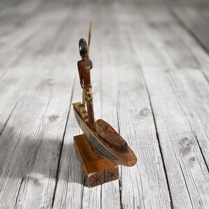 Vintage African wooden boat with figure and goods. 11.75”T x 14.5”W