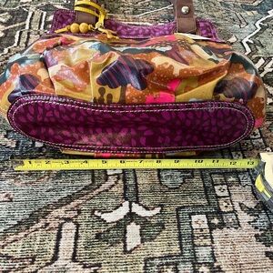 This vibrant Fossil Key Per women's bag features a unique fall multicolor pattern, perfect for adding a pop of color to any outfit. The bag combines shades of brown, pink, and yellow, making it versatile for various occasions. Never used!