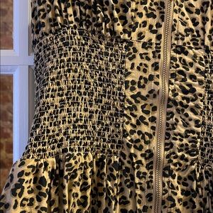 Chic leopard print midi dress. Features a zip front and gathered waist. Perfect for versatile styling. Great condition. Only worn 3 times! Large Petite.