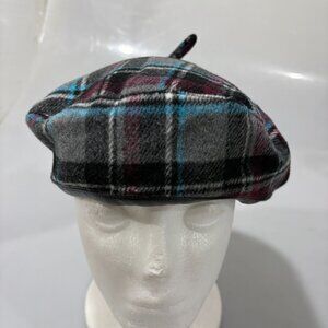 Halogen Gray Burgundy Blue Lined Beret Hat One Size NEW