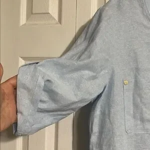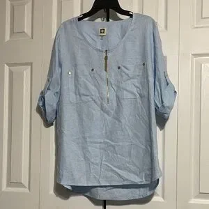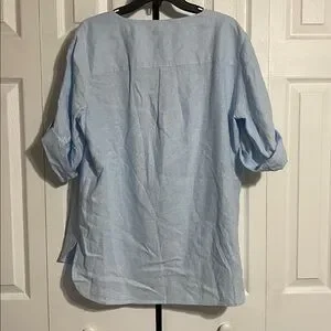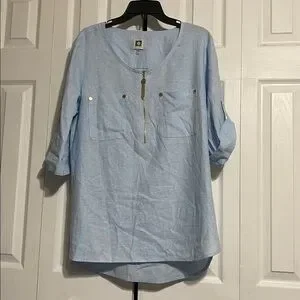 Anne Klein blue linen blend tunic top shirt blouse size LARGE