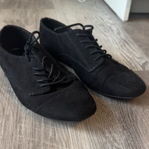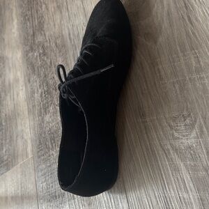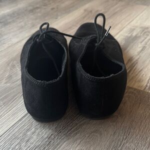 Sleek black flats with lace-up design. Perfect for casual wear. Comfortable and versatile.