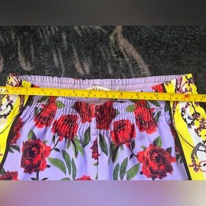 Bold floral design with vibrant colors. Wide-leg silhouette for a chic look. Perfect for adding flair to any outfit.