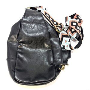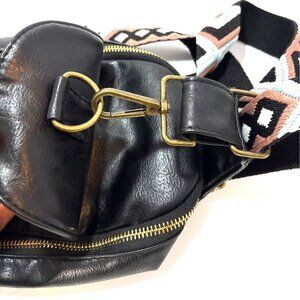Black Faux Leather Crossbody Sling Bag With Adjustable Aztec Strap Western