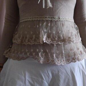 Cutest coquette/shoujo taupe and cream lace trim blouse