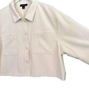 HALOGEN Womens Plus Patch Pocket Cropped Boxy Fit Jacket Ivory Size XXL