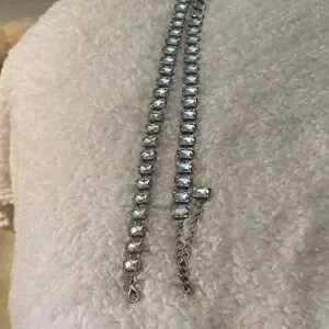 This stunning silver bracelet features sparkling crystals, perfect for adding a touch of elegance to any outfit.