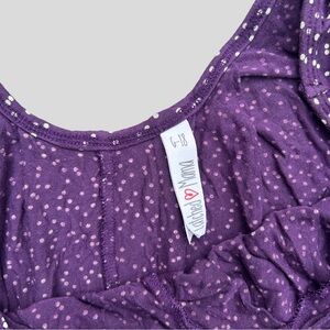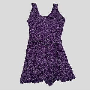 Latched Mama nursing romper in grape purple with white polka dots. Has pockets. Includes waist tie. Side access for nursing. Great condition. Standard size, or 6-18.