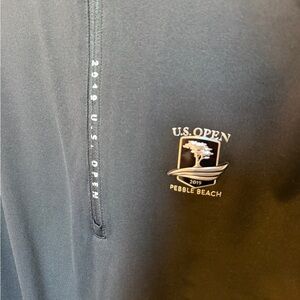 Stylish black quarter-zip pullover with US Open logo. Perfect for casual wear.