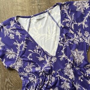 Details: deep v-neck, flares beneath bustline, soft, stretchy, unlined, no pockets, hits above (my) knees