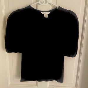 Black H&M mixed media t shirt with puff sleeves