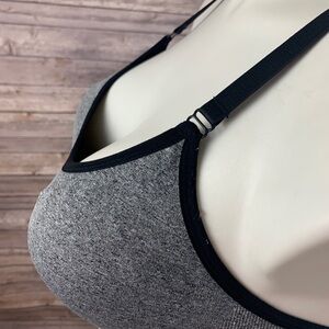 Puma Grey sports bra with black adjustable straps and keyhole Racerback. Removable breast pads. In great condition. #1005