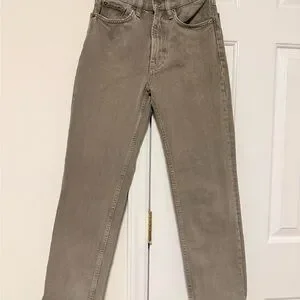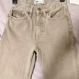 Zara High Rise Straight Leg Jeans Size 0 Khaki Beige Brown Wash