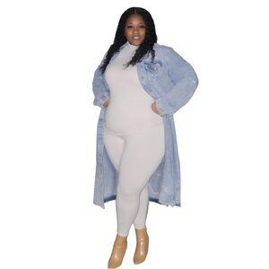 Unleash your inner fashionista with our Distressed Denim Long Jacket! Made with 90% cotton and 10% polyester, this jacket is both stylish and comfortable. The distressed denim adds a touch of edginess to any outfit. Perfect for any season, this jacket is a must-have for your wardrobe.
