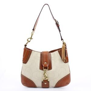 Vintage Y2K Coach Hamptons Hobo Bag With Cream Canvas And Gold-Tone Hardware