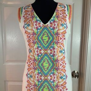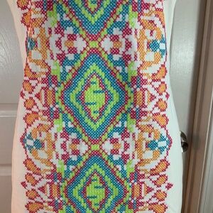 Wow Couture Embroidered Cross Stitch Boho White Sleeveless Dress Size Large