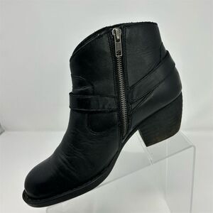 Born Western Black Leather Heeled Ankle Booties Size 9M Comfort Fall Casual