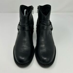 Brand, Born, US Shoe Size, 9M, Style, Bootie, Color, Black, Department, Women, Upper Material, Leather, Shoe Shaft Style, Ankle, Heel Style, Block, Occasion, Casual, Lining Material, Synthetic, Insole Material, Synthetic, Outsole Material, Synthetic, Toe Shape, Round Toe, Heel Height, Mid, 2-2.9 in, Type, Boot, Model, Carmel Harness, Vintage, No, Customized, No, Features, Handcrafted, Comfortable block heel, Easy side zipper closure, Closure, Zip, Country/Region of Manufacture, China, Condition, Pre-owned.