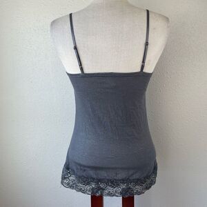 Elegant gray camisole with delicate lace trim. Perfect for layering or wearing alone. Soft and comfortable fabric.