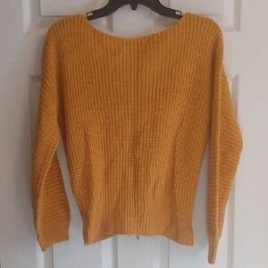 Chic mustard sweater with lace-up detail. Perfect for layering.